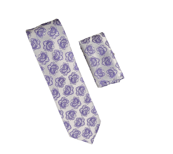 Silver & Lavender Paisley Designed Necktie Tie with Matching Pocket Square LTD-970