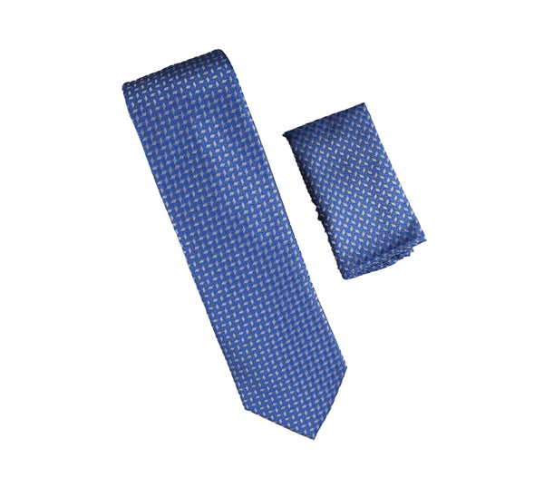 Royal Blue with Silver Designed Necktie with Matching Pocket Square WTH-A311