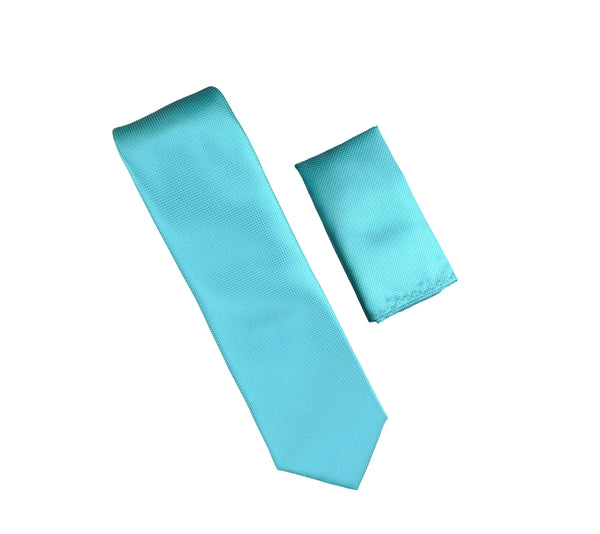 Aqua Blue Pin Dot Silk Necktie with Matching Pocket Square SWTHPD-58