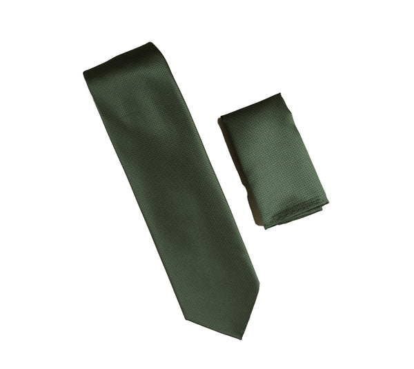Moss Green Pin Dot Silk Necktie with Matching Pocket Square SWTHPD-33