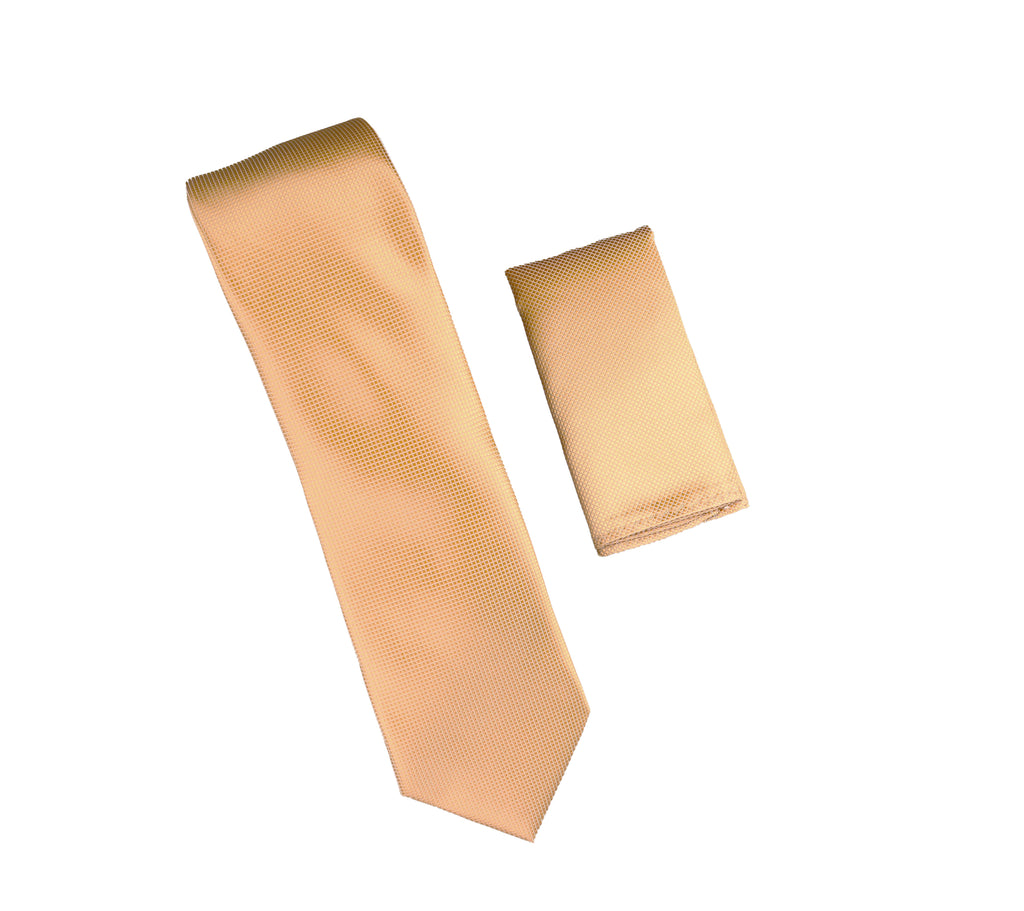 Gold Pin Dot Silk Necktie with Matching Pocket Square SWTHPD-06