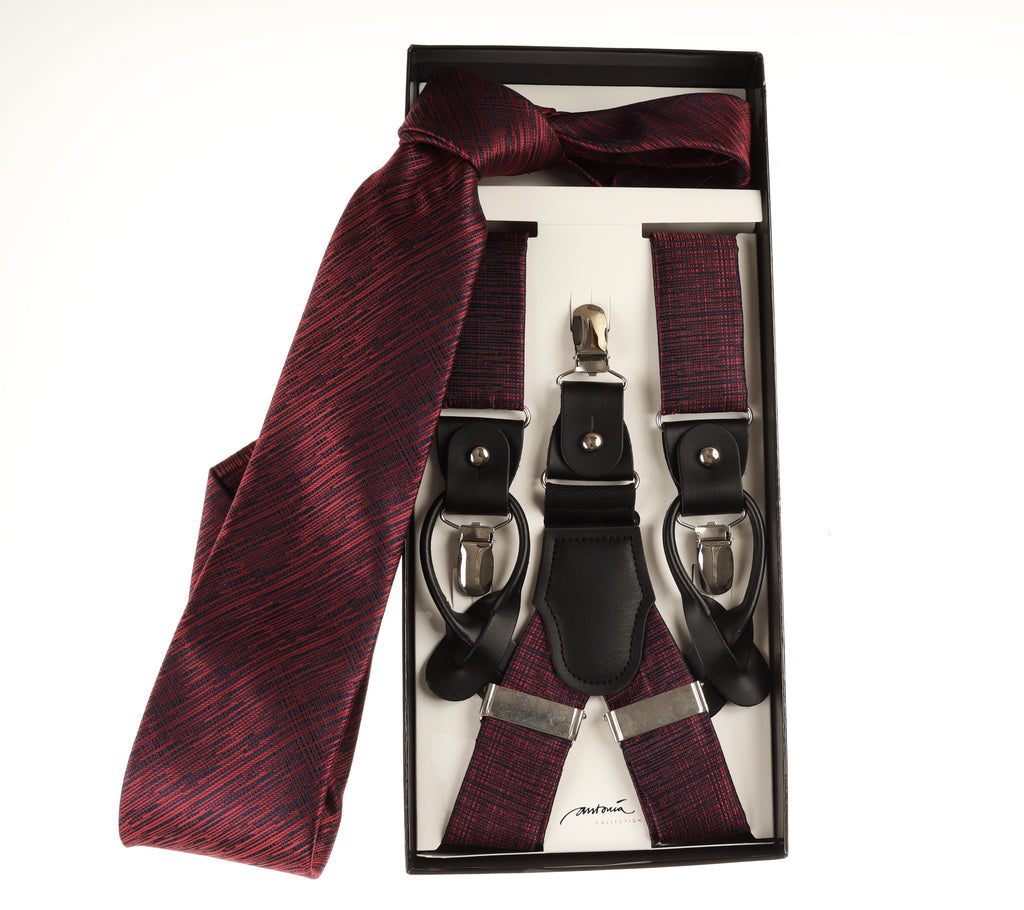 *Inventory Sale - Navy & Red Designed Necktie & Suspender Set with Matching Pocket Square SPTST-922
