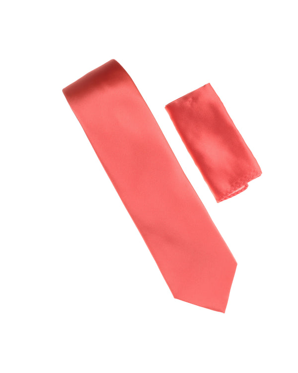 Coral Satin Finish Extra Long Necktie with Matching Pocket Square SWTHXL-218
