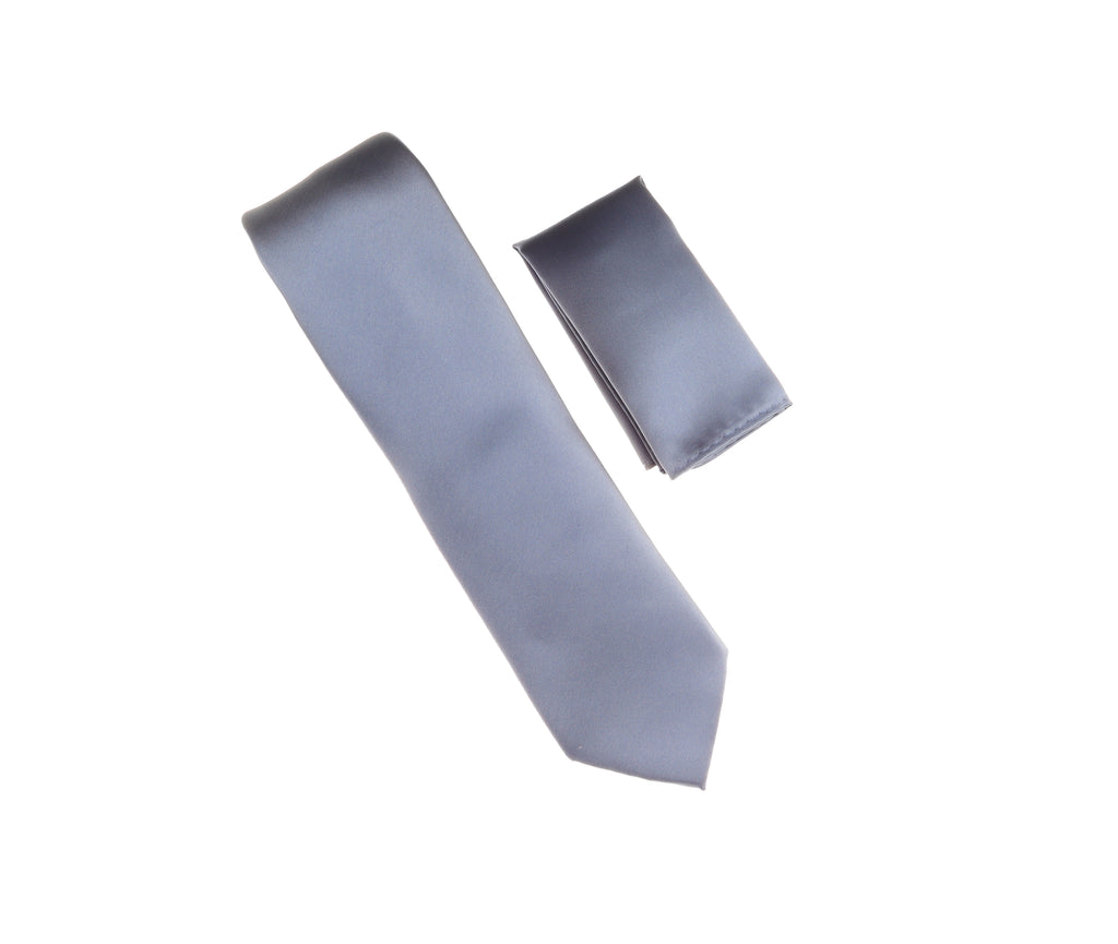 Dusty Blue Satin Finish Extra Long Necktie with Matching Pocket Square
