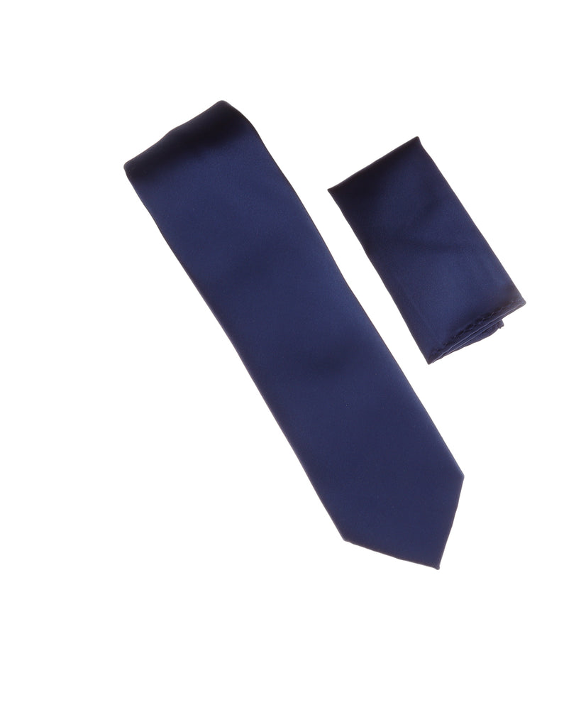 Dark Sapphire Blue Satin Finish Silk Extra Long Necktie with Matching Pocket Square SWTHXL-201