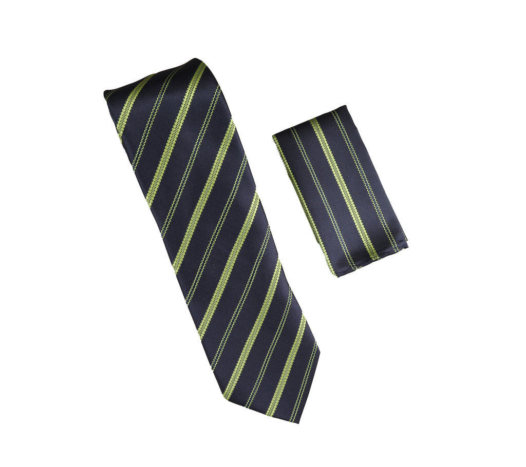 Navy with Lime Green Striped Designed Extra Long Necktie Tie with Matching Pocket Square WTHXL-974