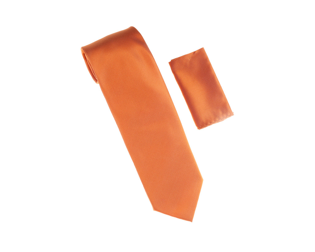 *Inventory Sale - Warm Orange Silk Wide Pin Dot Necktie with Matching Pocket Square SWTHPDW-54W