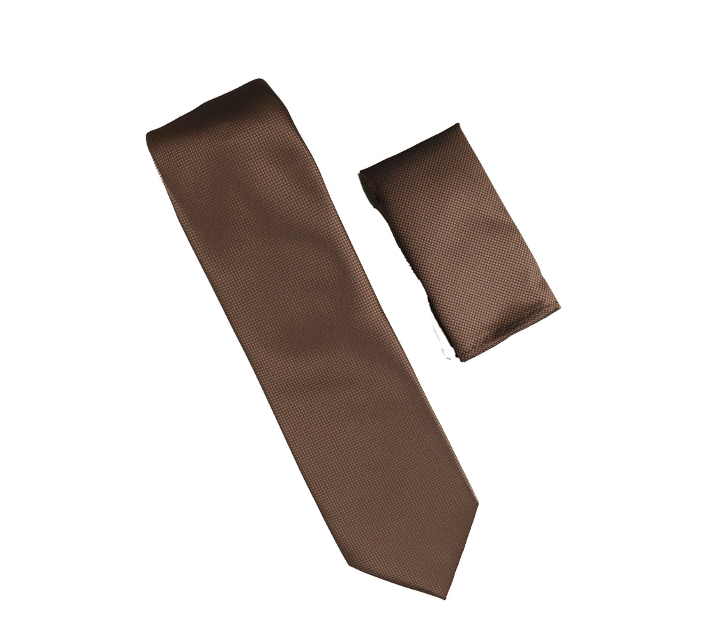 Brown Pin Dot Silk Necktie with Matching Pocket Square SWTHPD-25