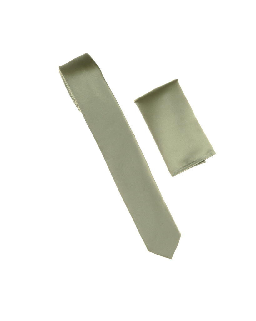 Dusty Sage Satin Finish Silk Skinny Necktie with Matching Pocket Square 2.5" Width SSKT-245