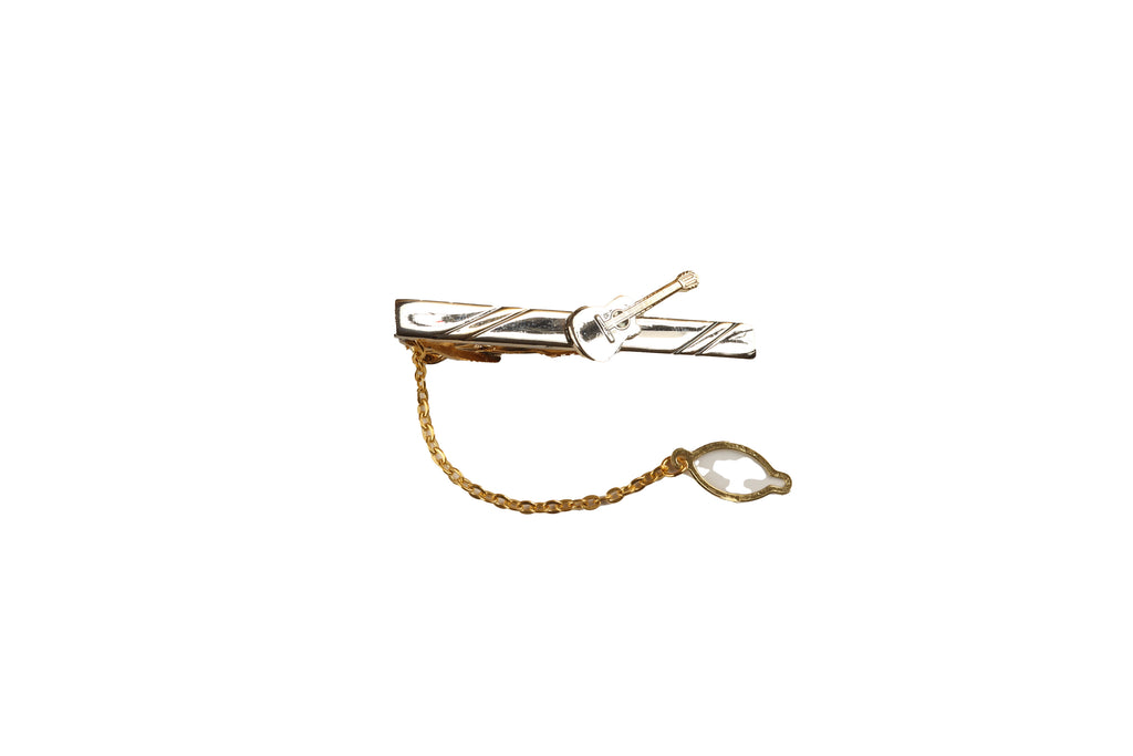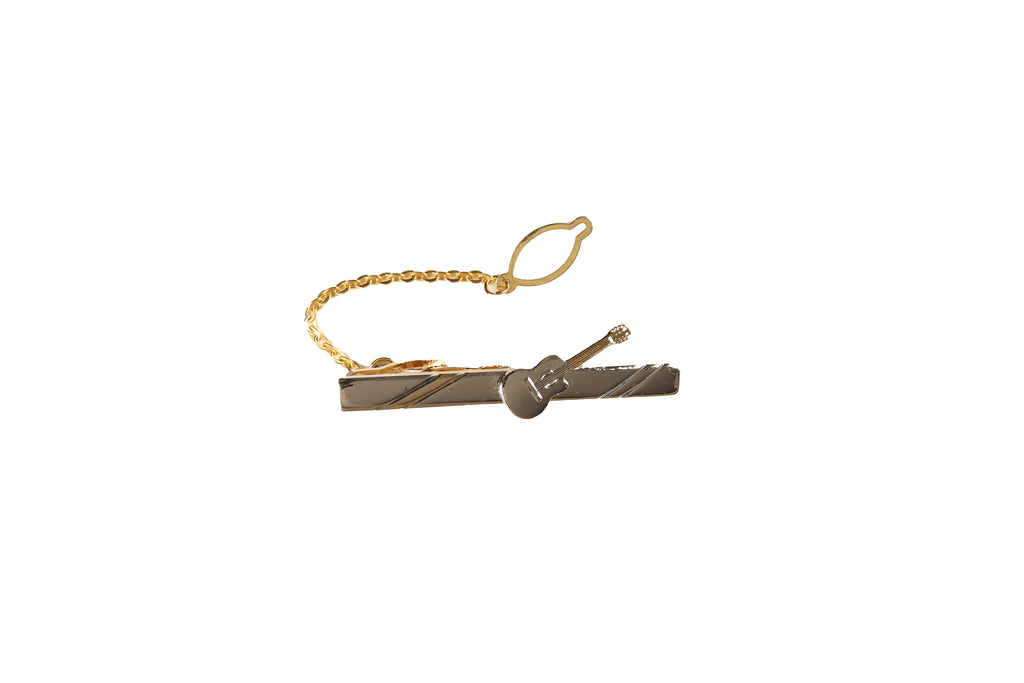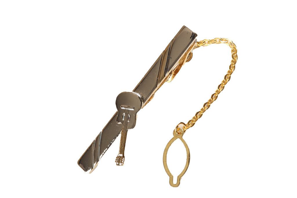 Gold Metal Tie Bar with Accent Guitar Design TB021