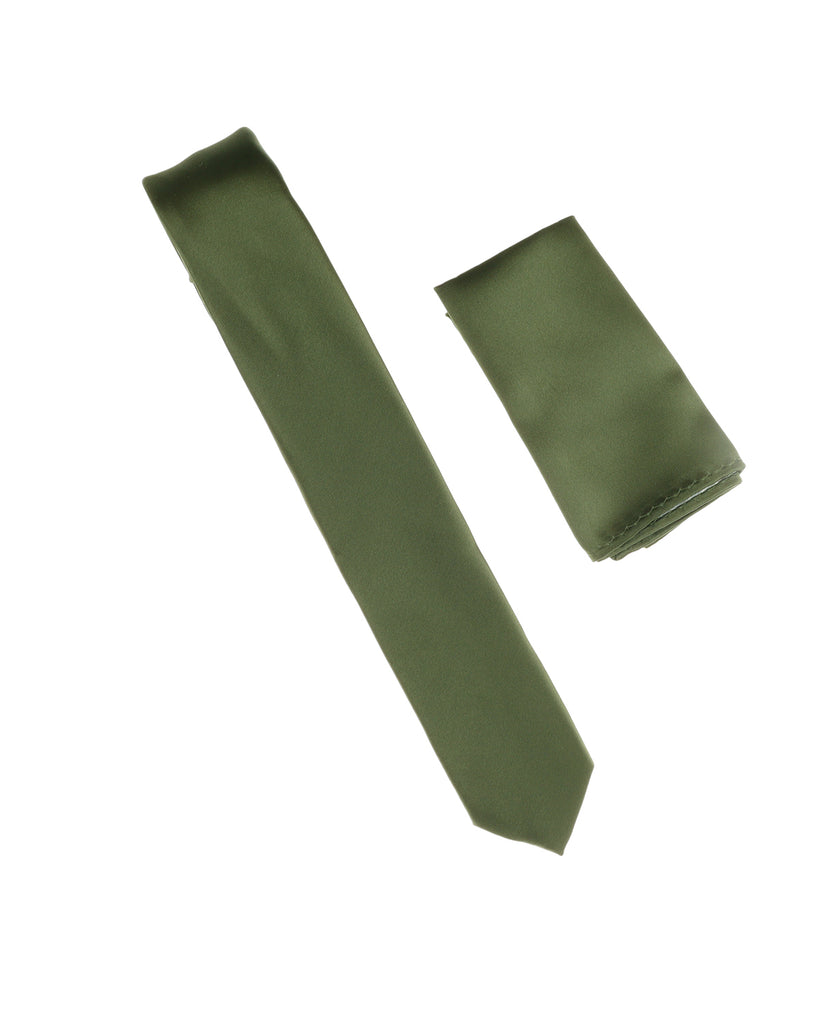Martini Olive Satin Finish Silk Skinny Necktie with Matching Pocket Square 2.5" Width SSKT-246