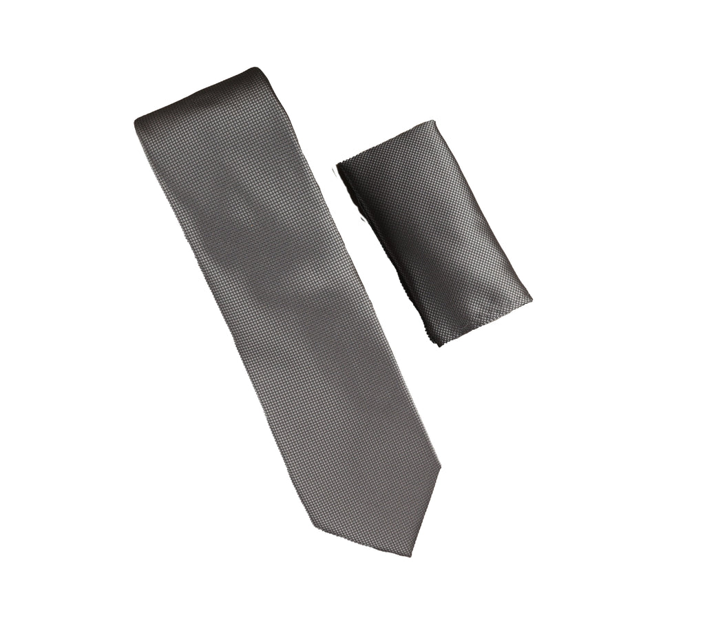 Metallic Gray Pin Dot Necktie with Matching Pocket Square SWTHPD-04