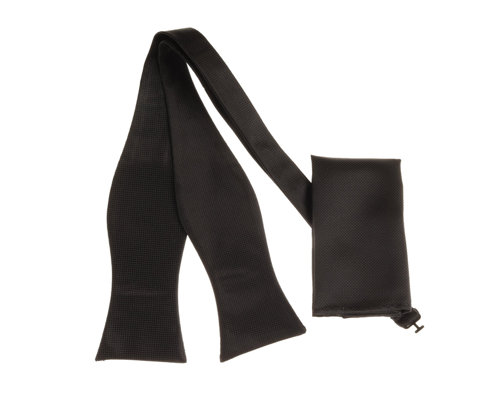 Pin Dot Solid Black Self-Tie Bow Tie Set With Matching Pocket Square PDSTBT-69