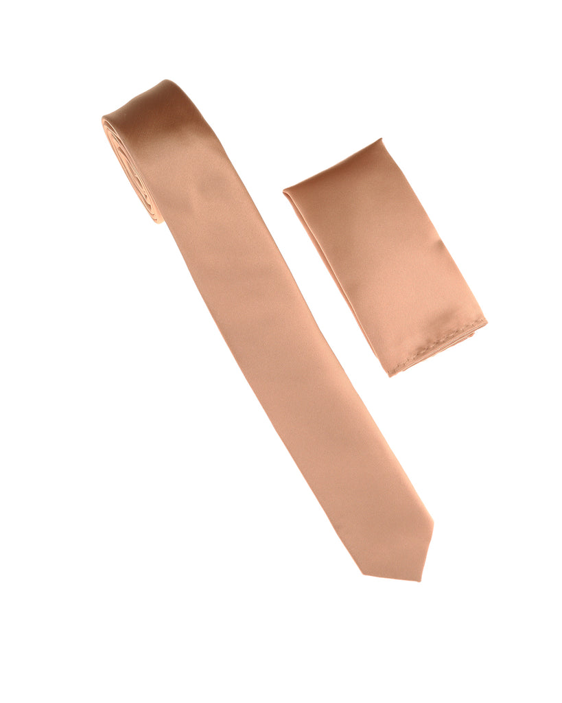 Sand Satin Finish Silk Skinny Necktie with Matching Pocket Square 2.5" Width SSKT-230